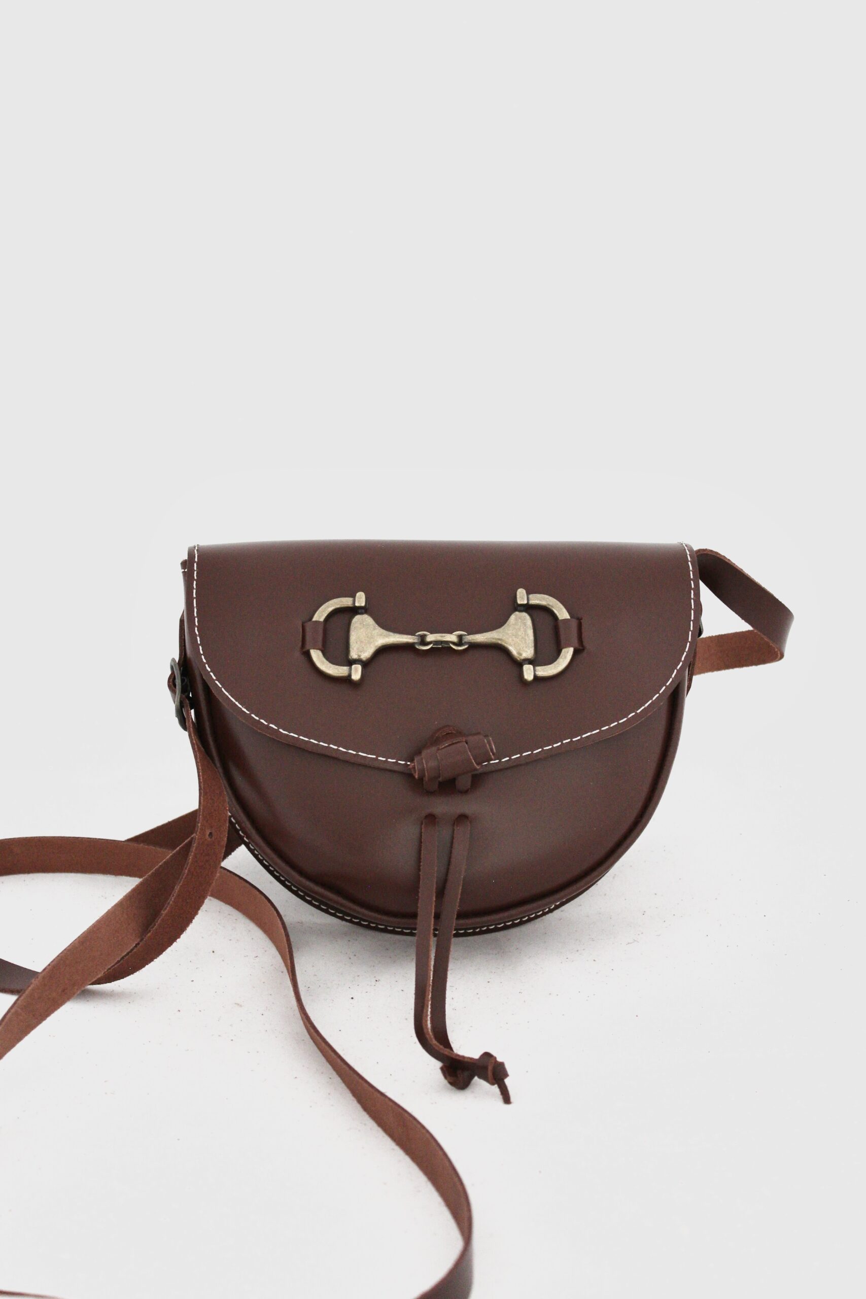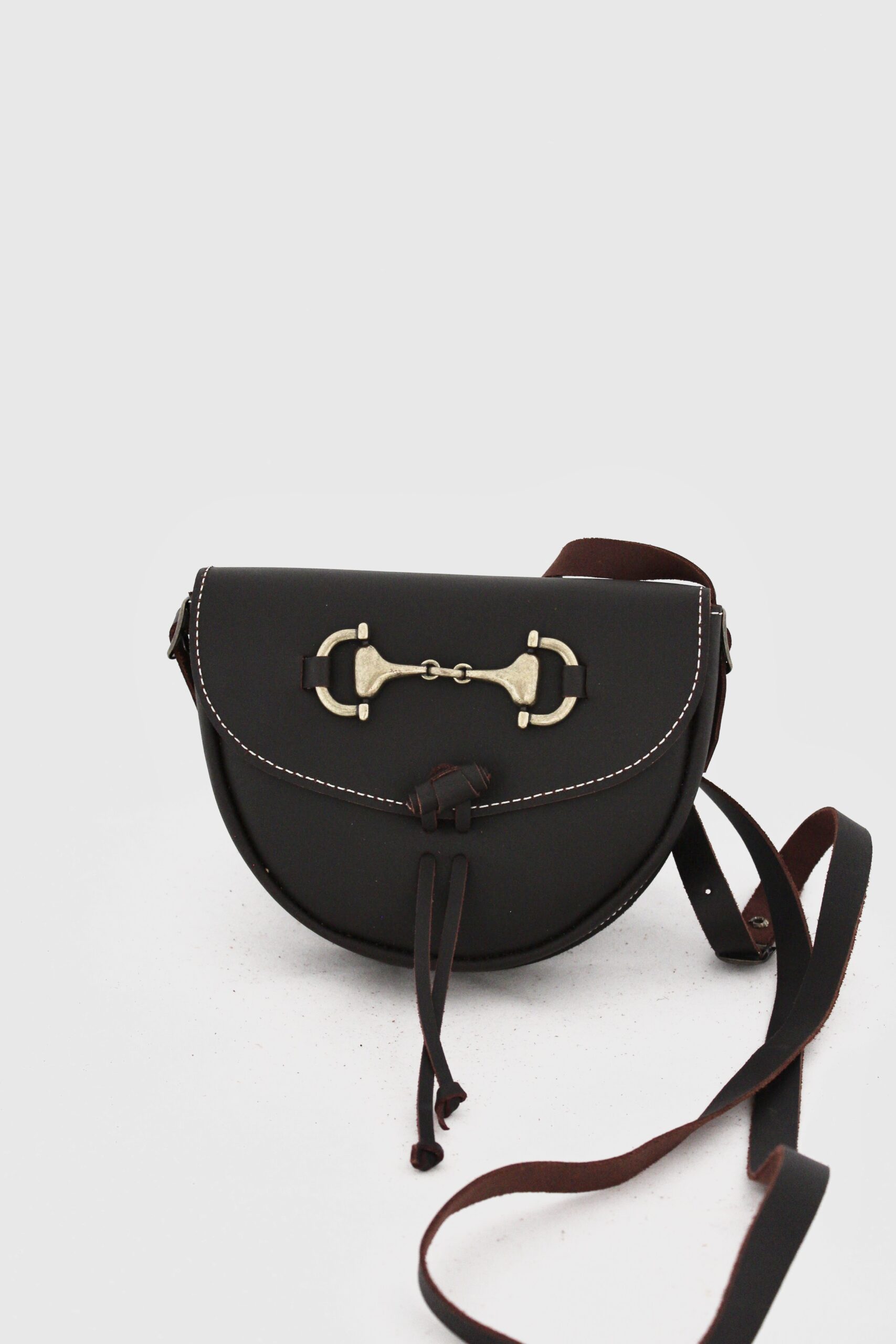 Bolso bandolera de piel auténtica con adorno metálico decorativo, diseño clásico y correa ajustable. Elegante, práctico y perfecto para el día a día.